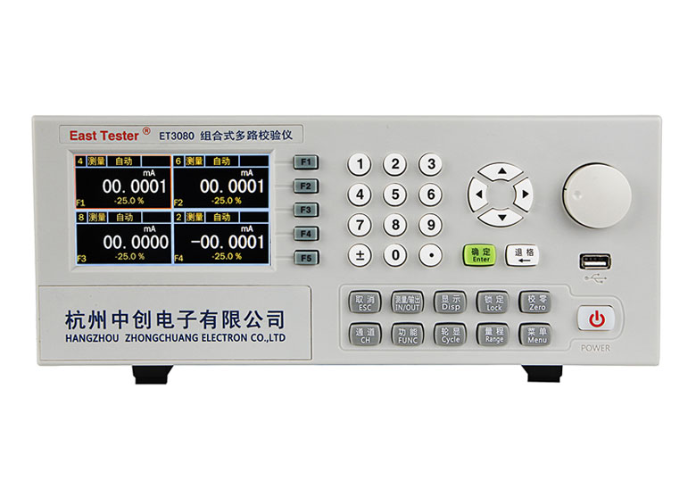组合式多路校验仪ET3080是一款开放式、创新型的台式校准仪器。它采用1台主机+信号模块(最多可达8路)的工作模式,各路信号间完全隔离、可同时使用。有效地实现了客户按需选择、避免浪费和随时的功能扩充,可最大限度的满足客户的需求。多种通讯方式(支持Rs232、Lan、Usb)可满足客户各种不同的应用需要。    本产品的问世,有效解决了目前市场上的校准仪器功能固定、局限性大的问题,用户根据自己的需要、选配不同的信号模块,可以自由组合出一台符合实际应用的产品。